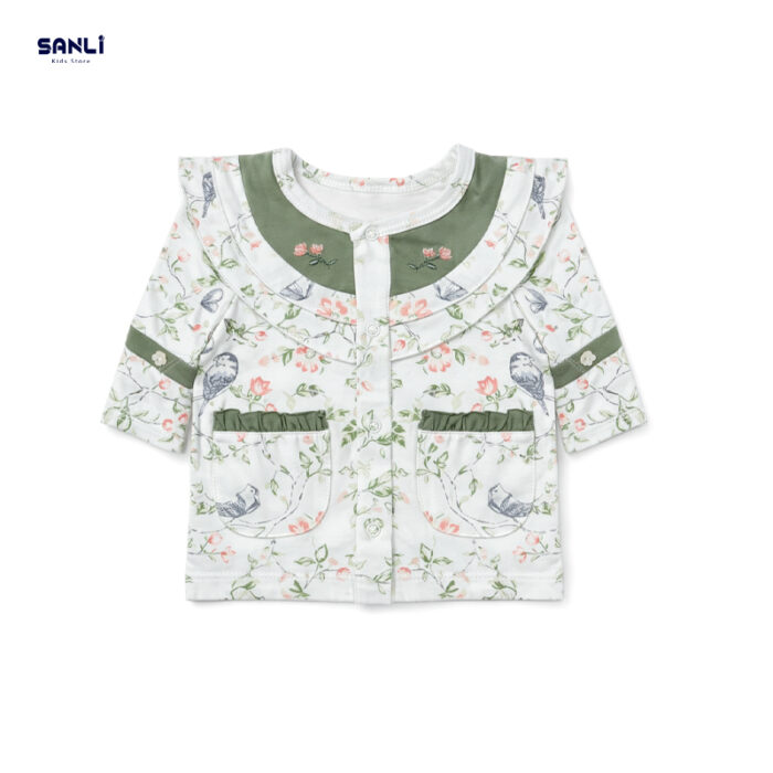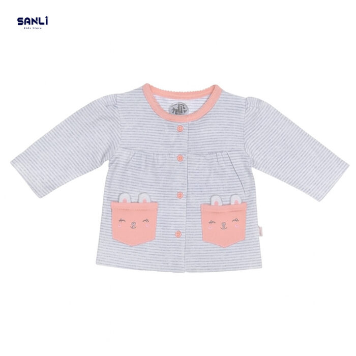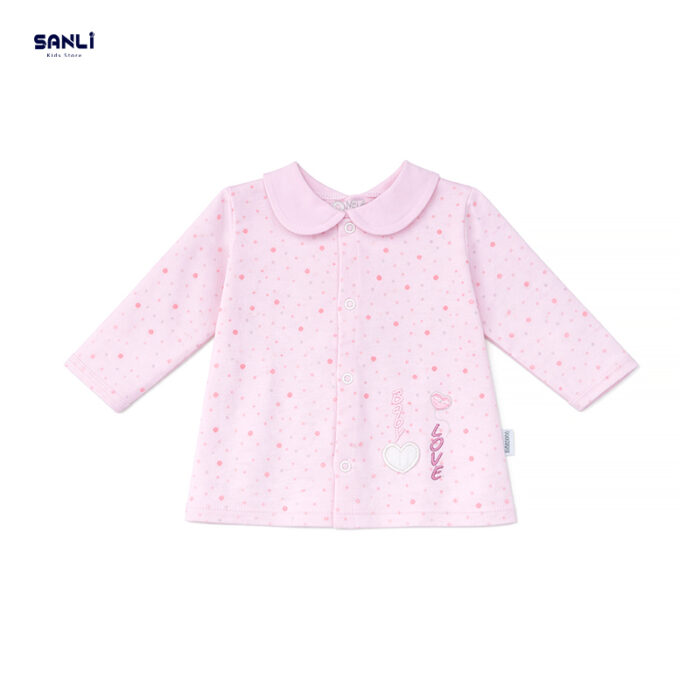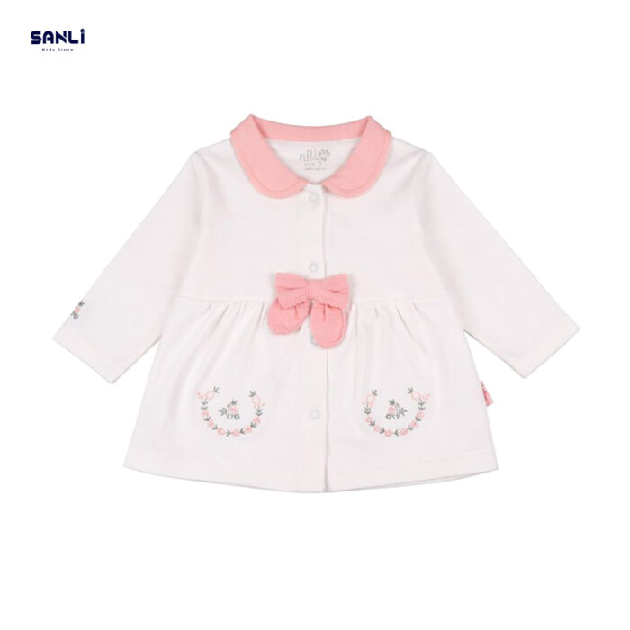 لباس مانتویی نوزادی دخترانه که در لیست ضروری سیسمونی با نام “بلوز جلو دکمهدار” نیز شناخته میشود، نوعی پوشش بالاتنه است که برخلاف تیشرتهای معمولی، از سمت جلو به طور کامل باز میشود. این لباس طراحی شده تا فرآیند تعویض لباس نوزاد را بدون نیاز به عبور پارچه از روی سر (که اغلب باعث ترس و بیقراری نوزاد میشود) تسهیل کند. در مدلهای دخترانه برند سانلی کیدز، این محصول معمولاً با جزئیات ظریفی مانند یقه بب، آستینهای مچی پفدار و برشهای کلوش در قسمت کمر تزئین میشود که ظاهری نیمهمجلسی و بسیار شیک به نوزاد میبخشد. این لباسها از نظر ضخامت در انواع مختلفی تولید میشوند؛ از پنبههای یکرو برای روزهای گرم تا پنبههای اینترلاک ضخیم برای فصول سرد، تا به عنوان لایه نهایی استایل نوزاد عمل کنند.