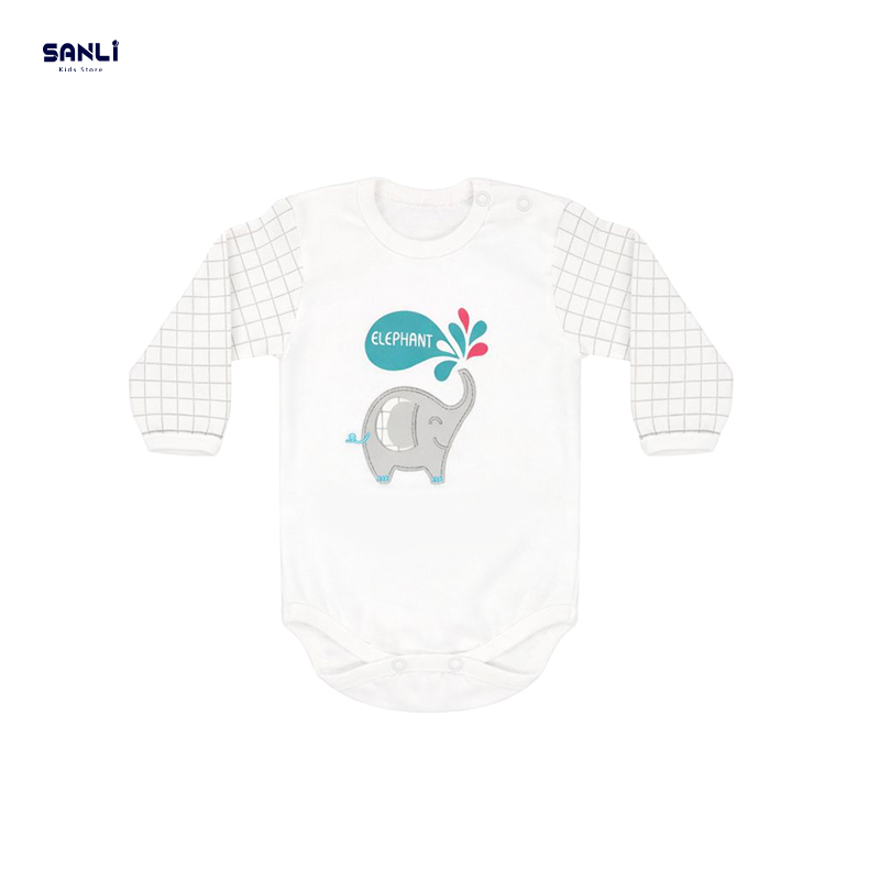 طرح فیل در این بادی، ظاهری دوستداشتنی و شیک به نوزاد شما میبخشد. طراحی ساده و در عین حال جذاب، این بادی را برای عکسهای کودکانه و ستکردن با شلوار، دامن یا شلوارکهای نوزادی به یک گزینه ایدهآل تبدیل میکند.